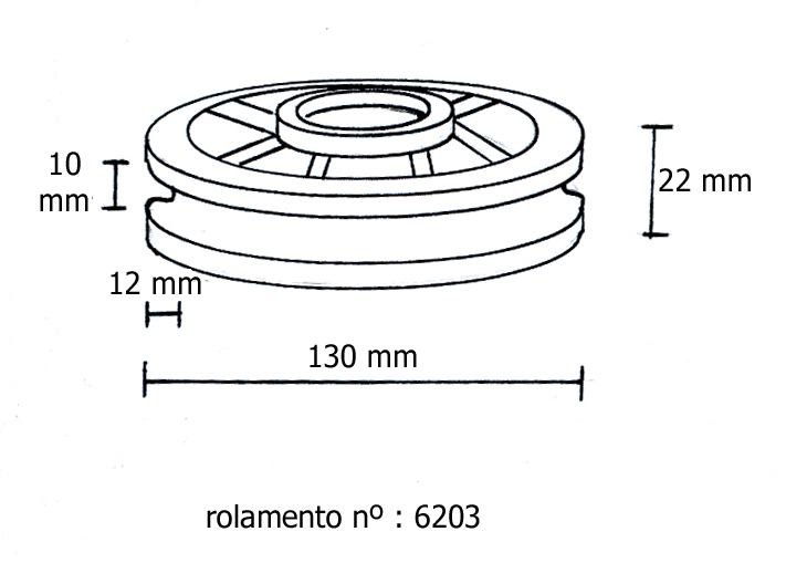 Roldana 120mm com rolamento 6203